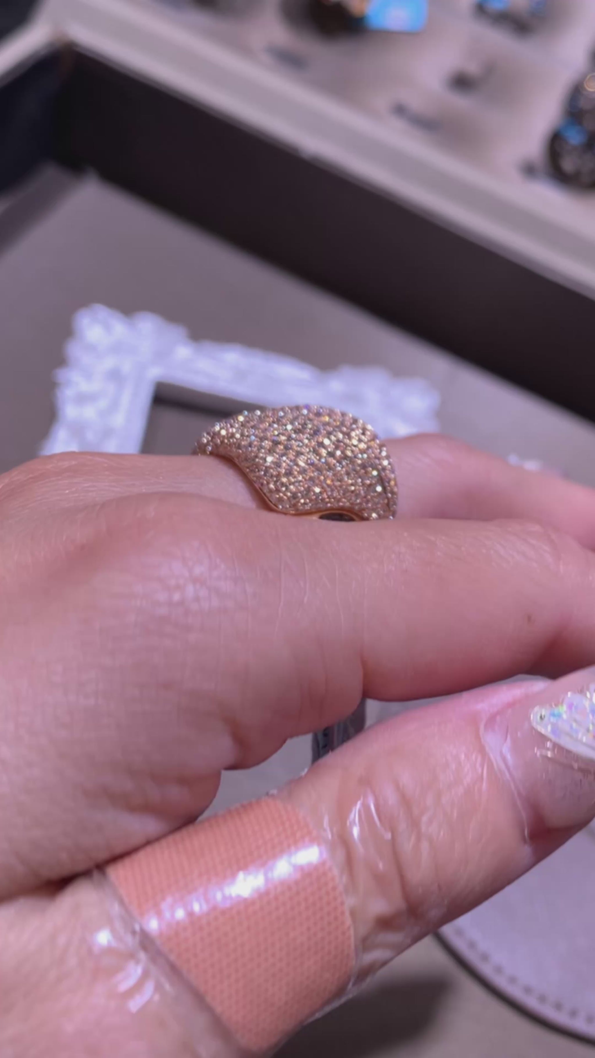 Picture it gleaming under warm evening lights at a rooftop dinner. As you lift your glass, the golden base glows richly while the diamonds ignite with a thousand sparks. It feels powerful with a tailored blazer and effortlessly glamorous with a silk gown, a statement that turns every gesture into radiance.